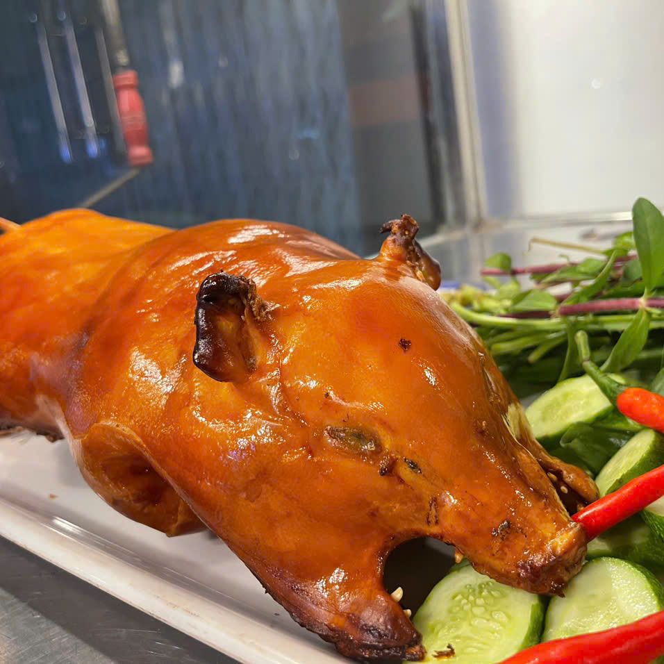 - Thịt hồng, ngọt, không khô, quay nguyên con nhưng vẫn giữ độ ẩm